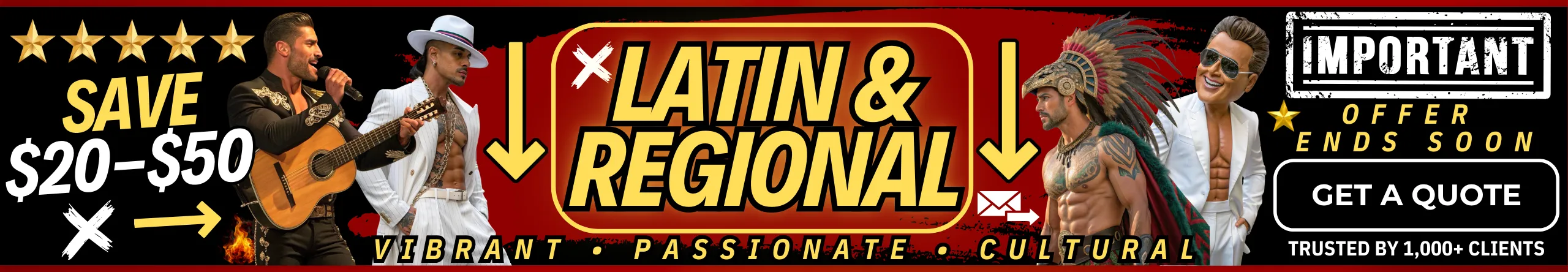 Our Latin & Regional costumes bring vibrant energy, culture, and charisma to any event. From the passionate 🎸 Mariachi, iconic “☀️ El Sol Luis Miguel,” and legendary 🗡️ Zorro, to bold looks like 🏦 Money Heist, classy 🤵‍♂️ Pachuco, and street-style 💀 Cholo. Add unique flavor with the daring ✝️ Priest Padre Amaro, rugged 🌱 Hot Landscaper, festive 🎭 Catrín Mariachi, electrifying 🤼‍♂️ Lucha Libre Wrestler, powerful 🪶 Aztec Warrior, and the timeless mafia-inspired 💼 Scarface.