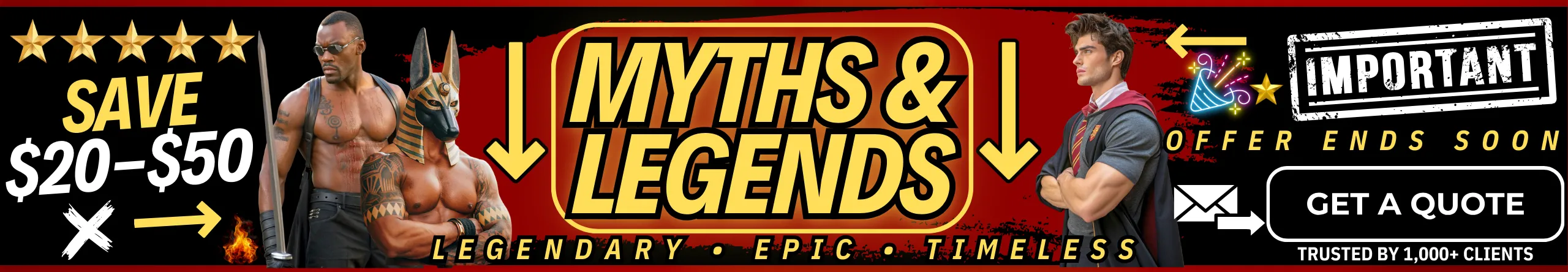 Step into timeless fantasy with legendary looks like ⚔️ Anubis, 👑 King, 🧛 Dracula, 🏺 Greek God, 🛡️ Gladiator, 🤴 Prince, 🏹 Robin Hood, 🗡️ Blade, 🪄 Harry Potter, 🧞 Aladdin, 👑 Pharaoh of Egypt, and 🌿 Peter Pan. These costumes bring iconic myths and magical tales to life, giving your party an unforgettable mix of power, mystery, and adventure.