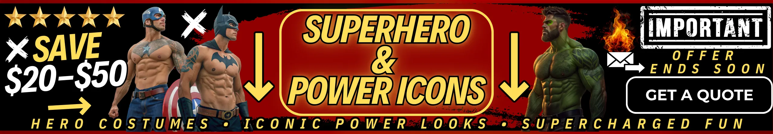 Step into the shadows with bold and mysterious costumes like 🟢 Doctor Doom, 🔥 Spawn, 🌀 Mr. Fantastic, 👹 Daredevil, 🐾 Kraven the Hunter, ☠️ Punisher, 🟥 Red Hood, 🌊 Namor, 🎲 Gambit, 🐉 Beast, 🤡 Deadpool, and 🕷️ Venom. These dark legends and antiheroes bring a thrilling, edgy vibe to any event—perfect for clients who want a mix of danger, fantasy, and unforgettable entertainment.